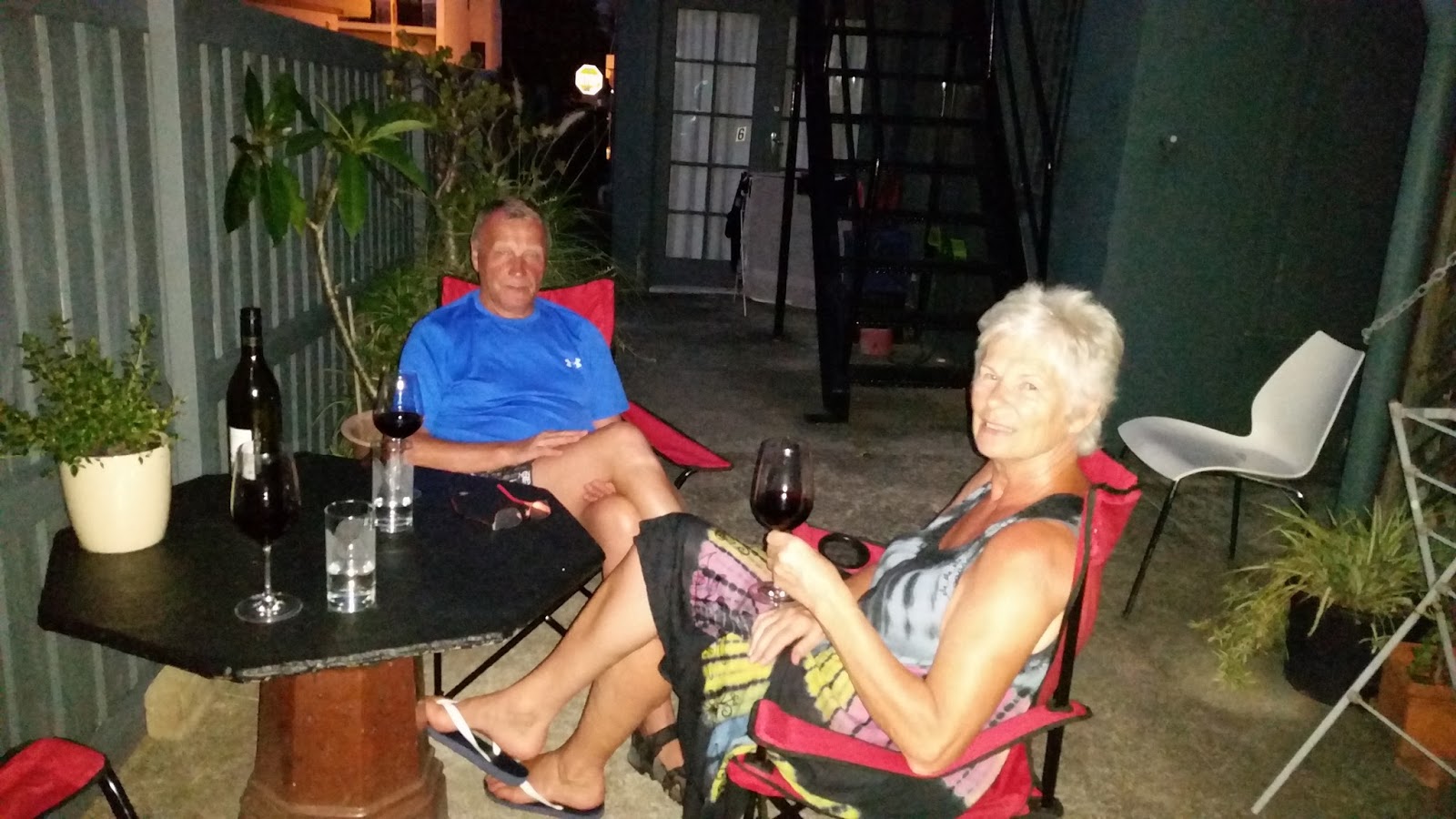 I måndags var det dags för Helen och Edwin att börja hemresan. Så mycket roligt vi gjort på dessa fyra veckor, som gick väldans fort. Sista veckan var katterna borta, så då dansade vi på bordet nere på Sutherland street. Eftersom Åsorna drog norrut så övertog vi huset med tillhörande uteplats. Min uteplats är också numera fin, men deras slår nog det mesta. Edwin har varit grillmästare med den äran.
